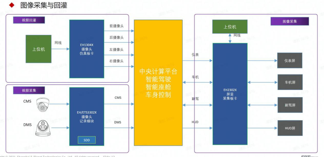 针对这个问题,业内也有一些新思路,比如,在图像采集上,尝试从物理信号中直接还原图像;在多点触控上,采用触摸手势的录制回放。怿星作为最早研发座舱测试相关产品的团队之一,在车载图像采集仿真的技术领域上有着丰富的经验。其中,EH系列图像采集板卡,能很好的解决座舱测试中的痛点,并在众多项目实践中广泛应用。